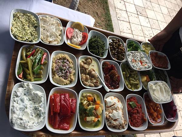 一入座, 服務生便搬來堪稱壯觀的土耳其小菜Meze 任你選,