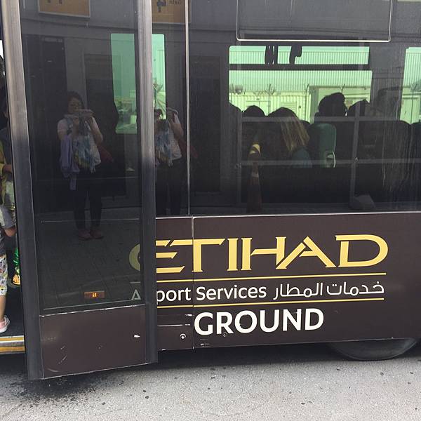 在阿布達比機場都是坐接駁車, 沒有走過空橋.