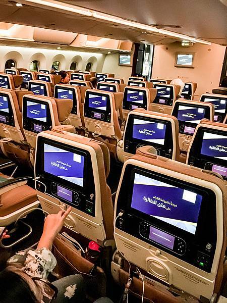 終於坐上Etihad 的航班, 機艙內不落俗套的配色給人很舒服的感受,