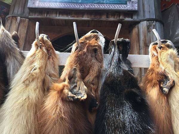 整個旅途上, 我們看到好多有趣的毛皮, 除了狼皮跟狐狸皮..... 還有熊皮.