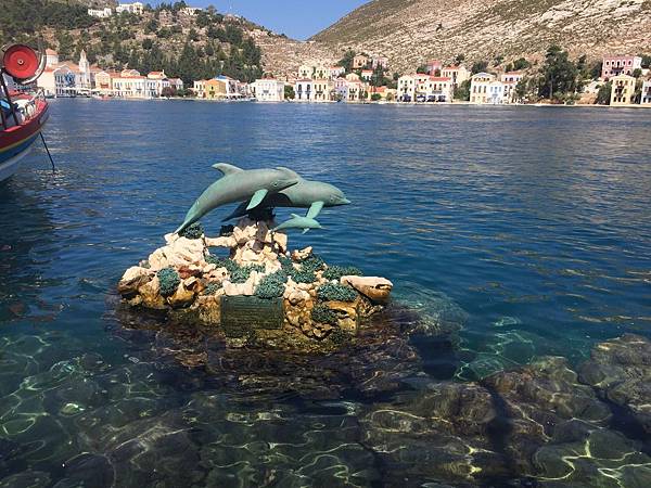 在港口, 首先印入眼簾的海豚雕像.