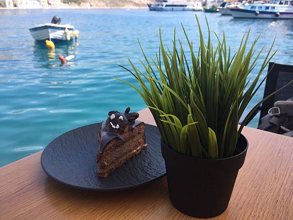 等待的空檔, 坐在海灣邊的咖啡館點上一塊蛋糕, 這大概是我們一路上最滿意的蛋糕,